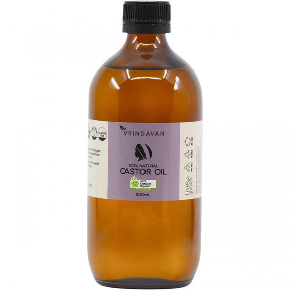 Castor oil is a vegetable oil derived from the castor bean seed. Cultivators of castor beans remove the hull of the seed, before pressing it to obtain the oil. Vrindavan Castor oil is colourless, odourless, cold-pressed and hexane-free. Vrindavan have now bottled this liquid gold in a glass amber bottle, which can be recycled and no plastic bottle in sight!