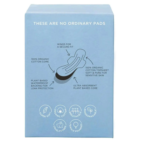 Discover the essence of mindful menstruation with TOM Organic Super Pads. Made from 100% organic cotton topsheet, these ultra-thin, biodegradable materials pads are perfect for women and teens seeking a harmonious balance between comfort and sustainability. Ideal for heavy flow, they provide reliable protection without harsh chemicals. Clinically tested for sensitive skin, our pads are hypoallergenic and free from chlorine bleach, dioxins, fragrances and dyes, ensuring your health and well-being are never compromised. Our unique design features wings for a secure fit and a plant-based core for exceptional absorbency, ensuring you stay confident and comfortable. When you choose TOM Organic, you're not just buying periodwear, you're becoming part of a movement towards conscious living and menstrual care that respects both your body and the environment. Our TOM Organic Super Pads are carefully packaged in recyclable cardboard, with individual wrappers made from siliconised PE film and bio-plastic. This sustainable approach minimises the impact on the environment and ensures that our packaging is as conscious and eco-friendly as the pads themselves. Small Choice. Big Impact.