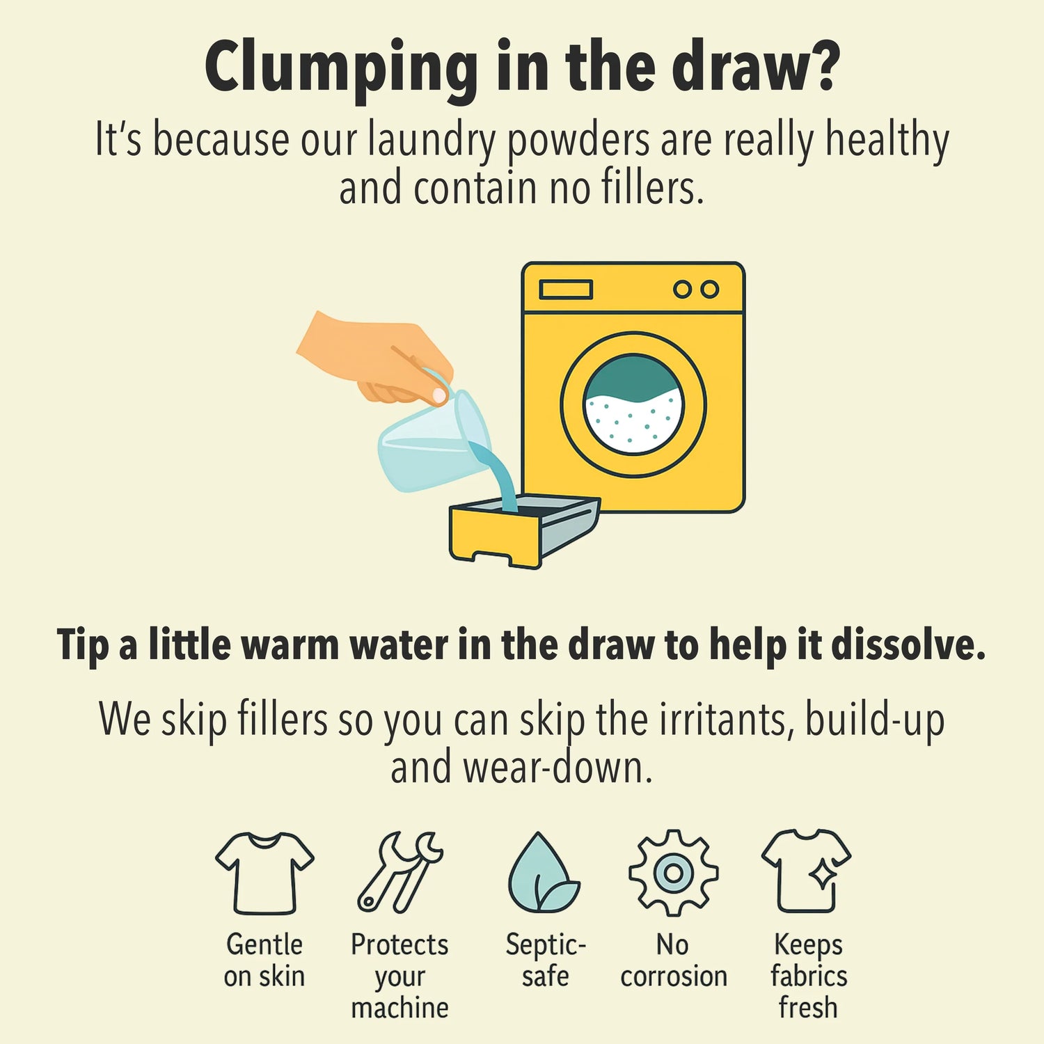 Our Laundry Powder is a hardworking, healthy and earth-friendly laundry detergent. It’s filler free and 100% pure washing power. Its hypoallergenic formula is safe for sensitive skins. At 50 washes per kg, it provides exceptional value while being good for the environment.